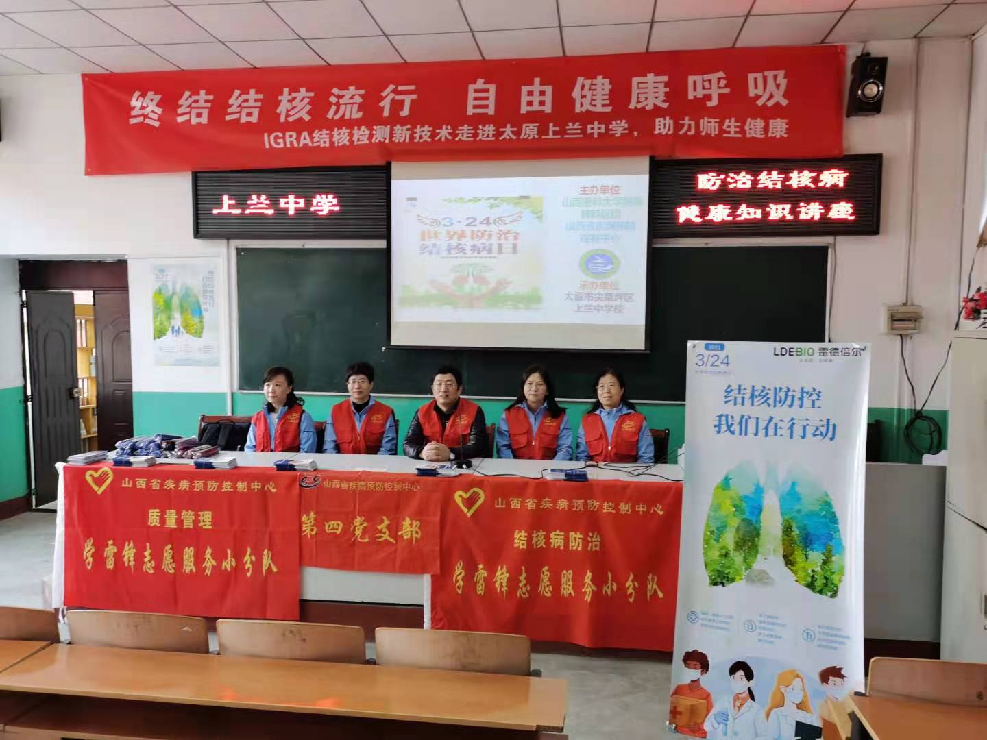 3月24日是第26個"世界防治結(jié)核病日",今年WHO的主題是“分秒必爭,終止結(jié)核”,我國的宣傳主題是“終結(jié)結(jié)核流行,自由健康呼吸”。由山西省疾病預(yù)防控制中心、山西醫(yī)科大學(xué)附屬肺科醫(yī)院聯(lián)合舉辦324結(jié)核防控知識進(jìn)校園主題活動,本次活動分別在中北大學(xué)和太原市上蘭中學(xué)進(jìn)行。本次活動旨在貫徹落實《中國校園結(jié)核病防控指南(2020年版)》,提高師生健康素養(yǎng)和防病意識,普及結(jié)核病防控知識和技能,改善行為習(xí)慣,增強校園群體防控能力,營造全校師生參與結(jié)核防控的良好氛圍。